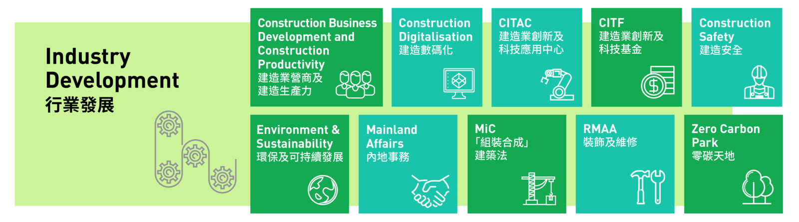There are ten departments under Industry Development. The current core initiatives being undertaken include design for safety, digitalisation, industralisation, and embracing innovation and advanced technologies.